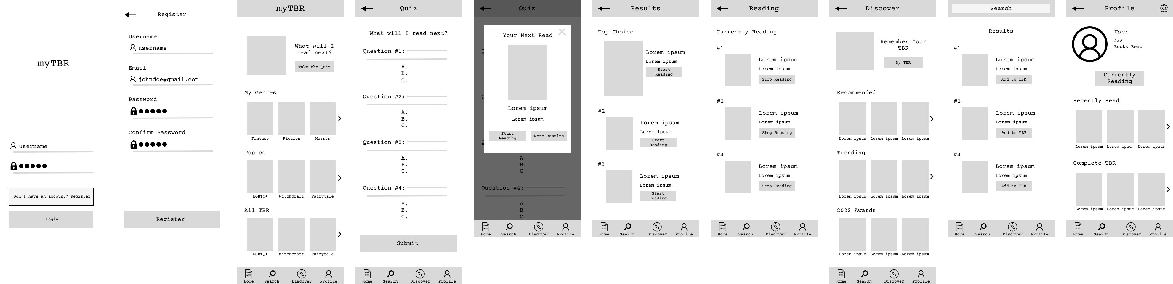 After several rounds of editing and correcting errors found in the low-fidelity prototype, I proudly present the high-fidelity prototype of myTBR.