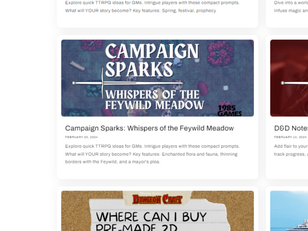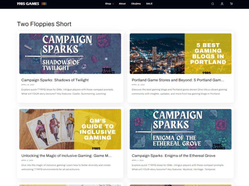 Objective: To revitalize the existing “Two Floppies Short” blog for 1985 Games, boosting customer engagement and organic traffic by refining the content strategy for the TTRPG community.